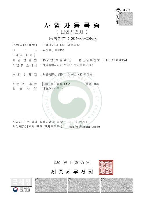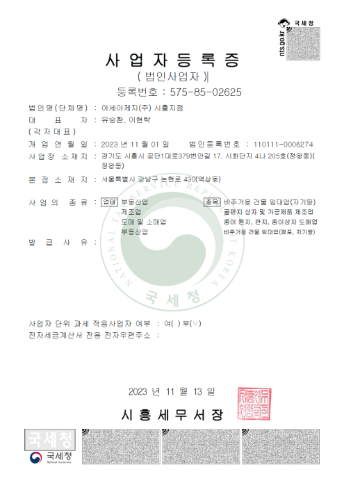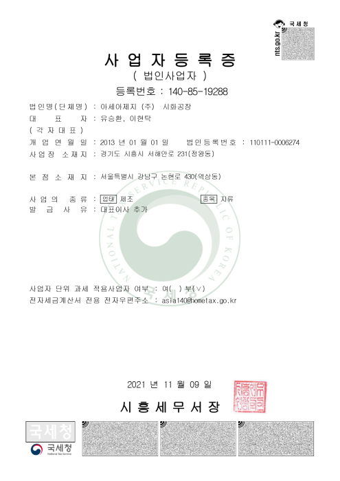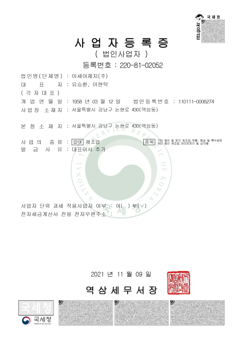 본사 | 서울특별시 강남구 논현로 430 아세아타워 8층