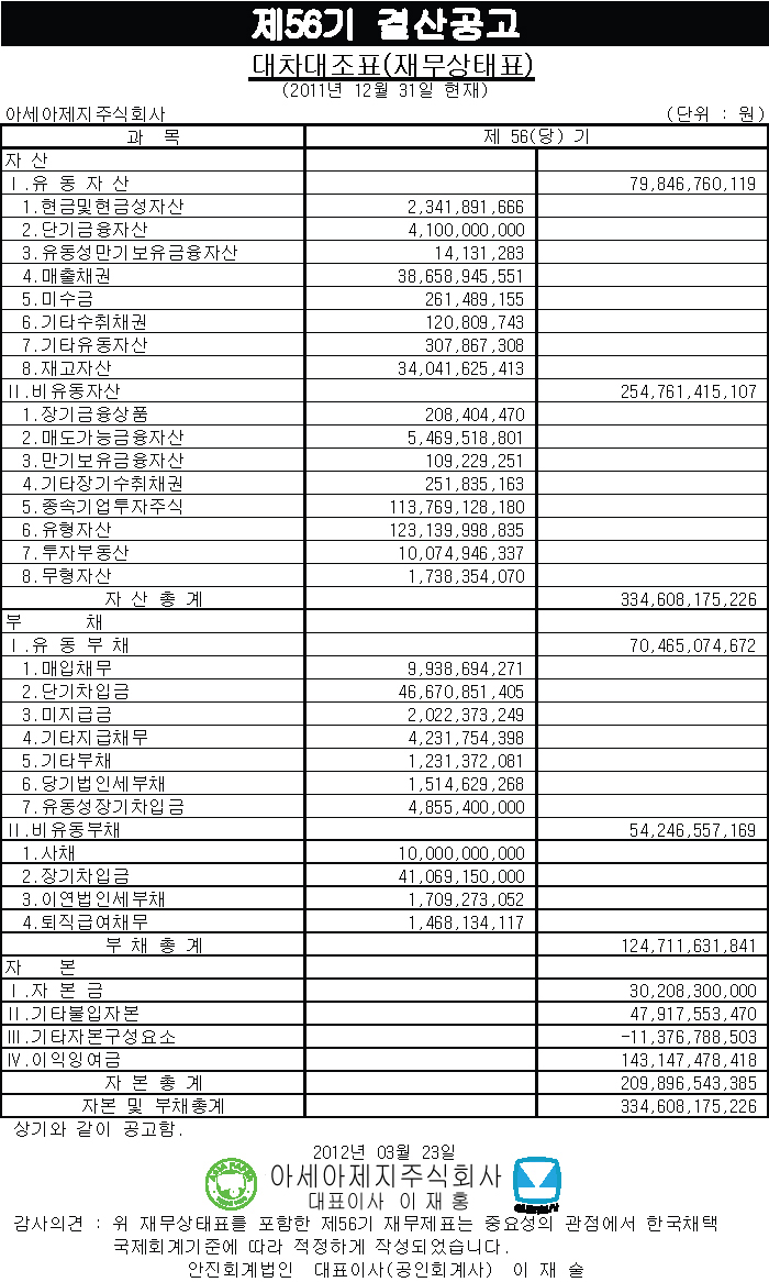 제 56기 결산공고 입니다.